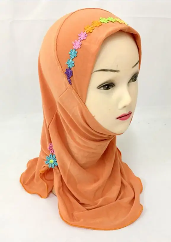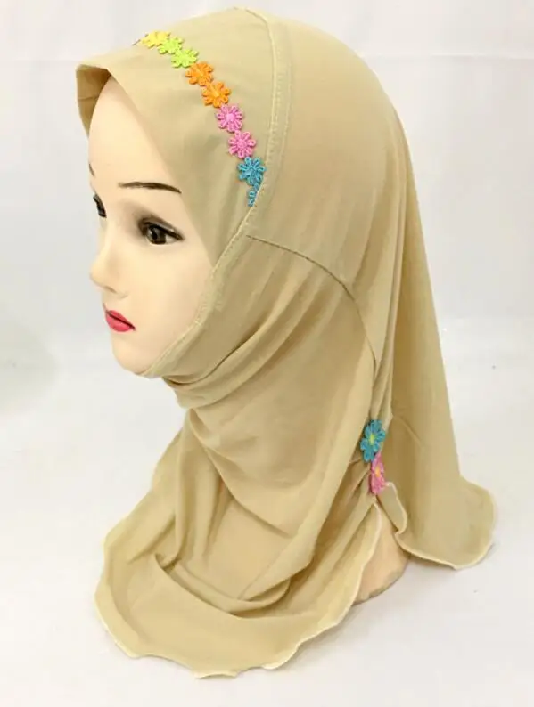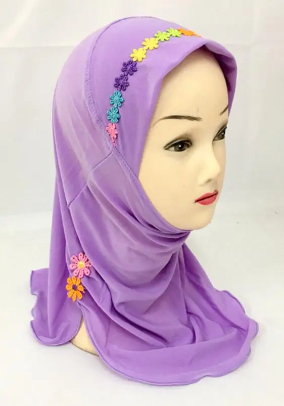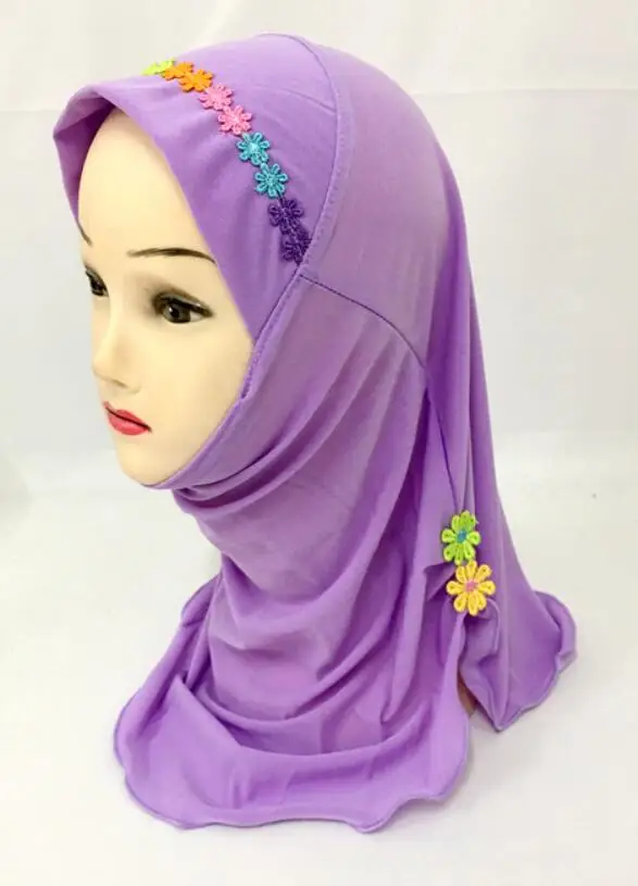 Age: JUNIOR Girls Kids Muslim Beautiful Hijab Islamic Arab Scarf Shawls Flower Pattern