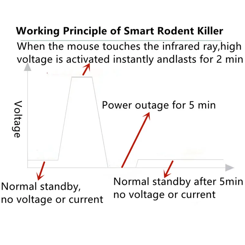 Self-invented and patented product, the latest upgraded safe and effective electric mouse device uses instantaneous high voltage to kill mice, but the current is less than 36v, which is safe for humans and animals. The product can be used directly without assembly. It can contain mice in a large area and leave them nowhere to go. Escapeable and foldable for easy storage. Infrared induction rodent killing, when mice touch infrared rays, they will immediately release high voltage to kill them.