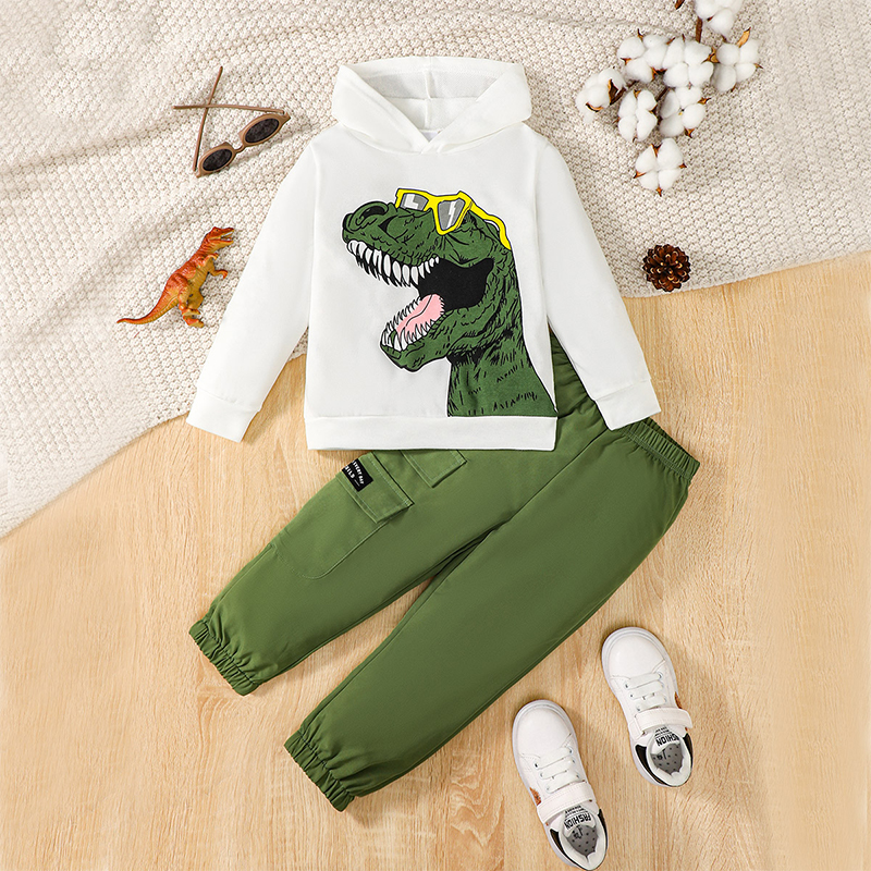Boy Autumn Clothes Dinosaur Pattern Long Sleeve Hoodie Sweatshirt Elastic Waist Cargo Pants 2Pcs OutfitSize(cm)
