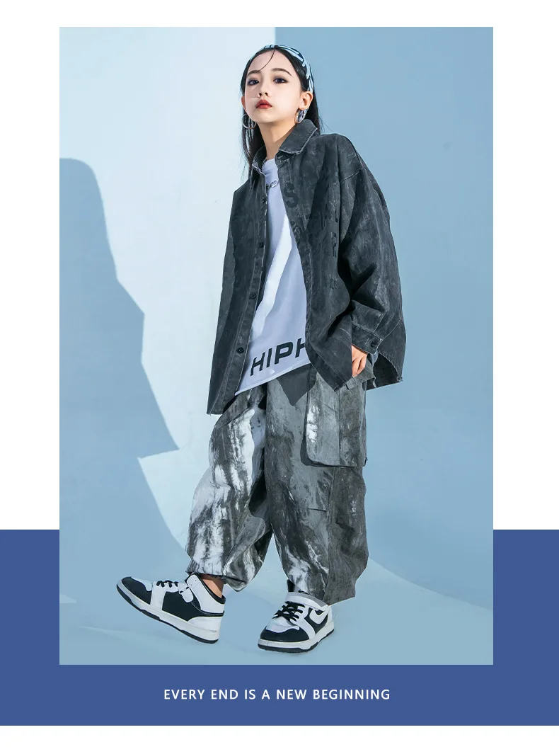 Age Range: 7-13Y Kids Streetwear Loose Casual Long Sleeve Shirt Pant Sets Boys Girls Cargo Pant Tracksuits Children Dance Hip Hop Clothes