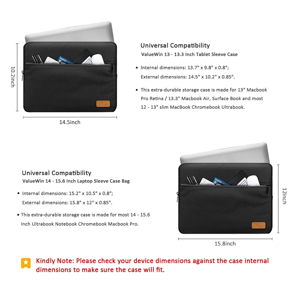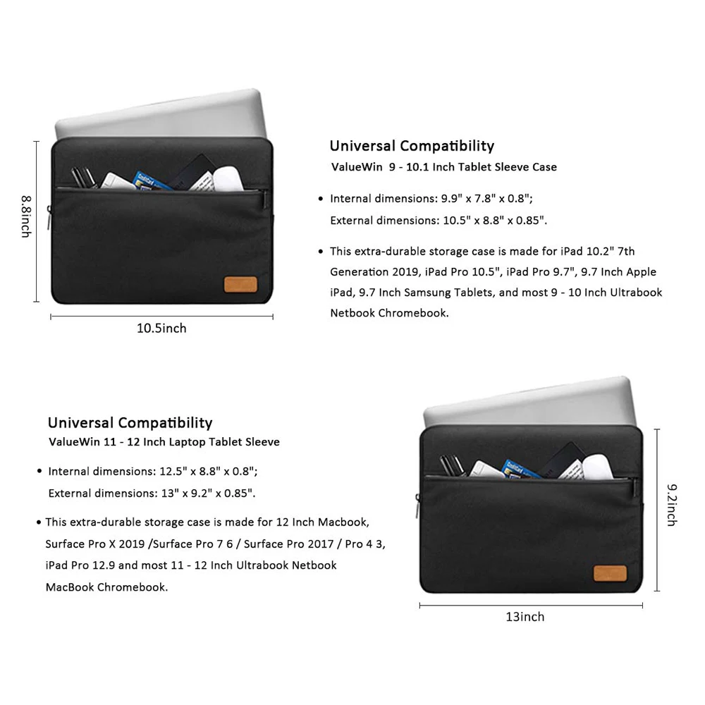 .Laptop Tablet Sleeve Pouch Notebook Case 9.7" 12" 13" 13.3" 15" 15.6" Cover Bag For Macbook Xiaomi Huawei HP Dell Portable Bags