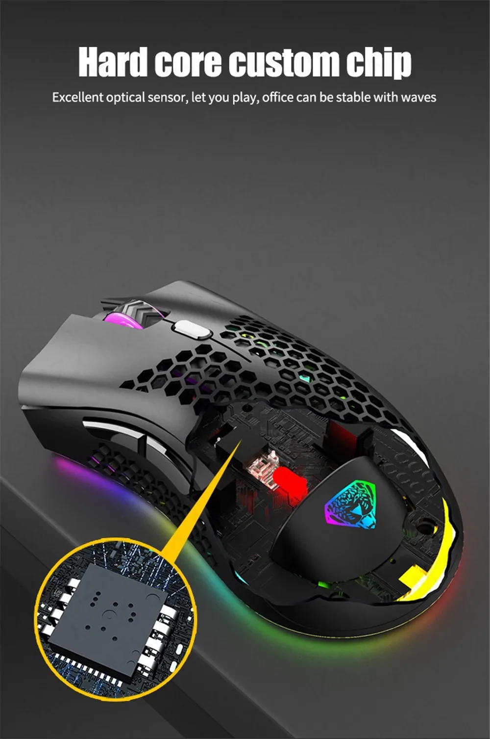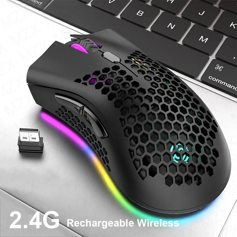 MZX Rechargeable Wireless Mouse 2.4G RGB Light Ergonomics USB Charging Gaming Mice for Mac Desktop PC Computer Notebook Laptop