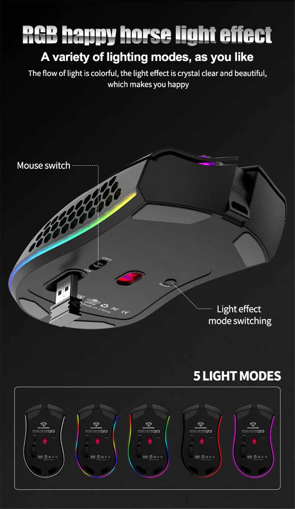 RGB light effect, 5 mode adjustable, providing immersive visual experience.