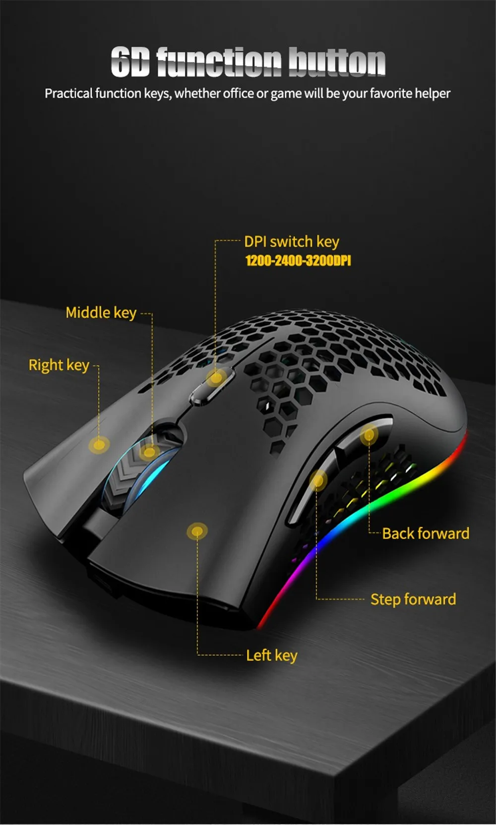 Ergonomic lightweight design, the mouse fits your hand, comfortable to use.