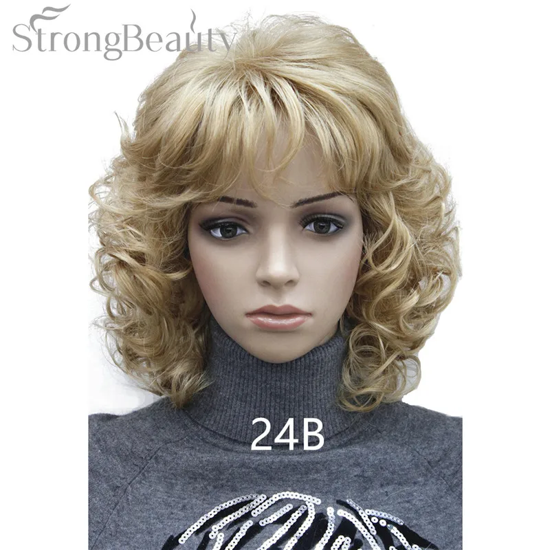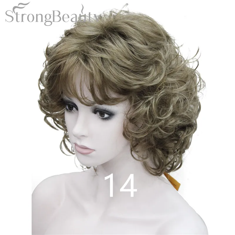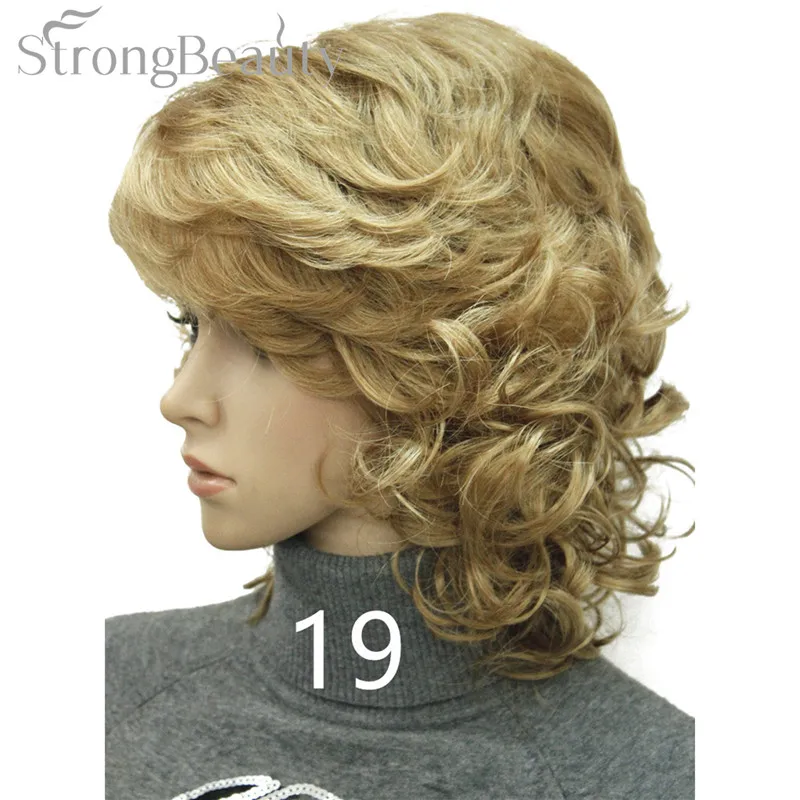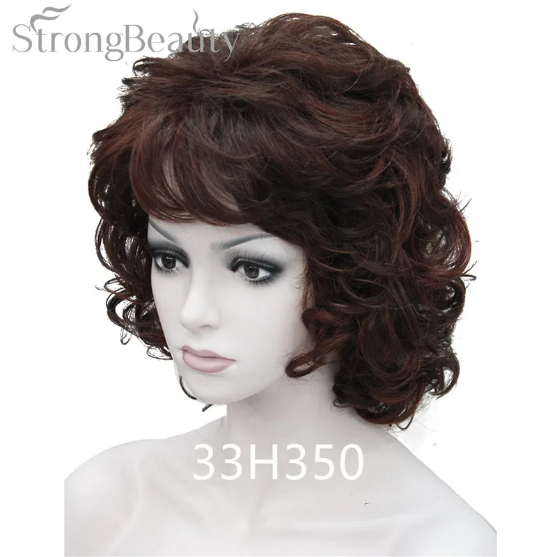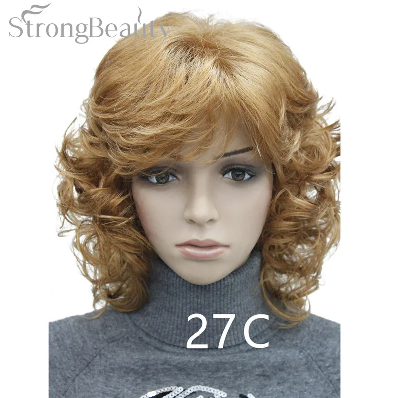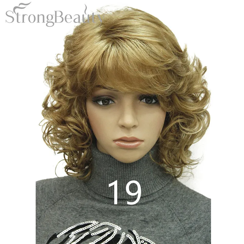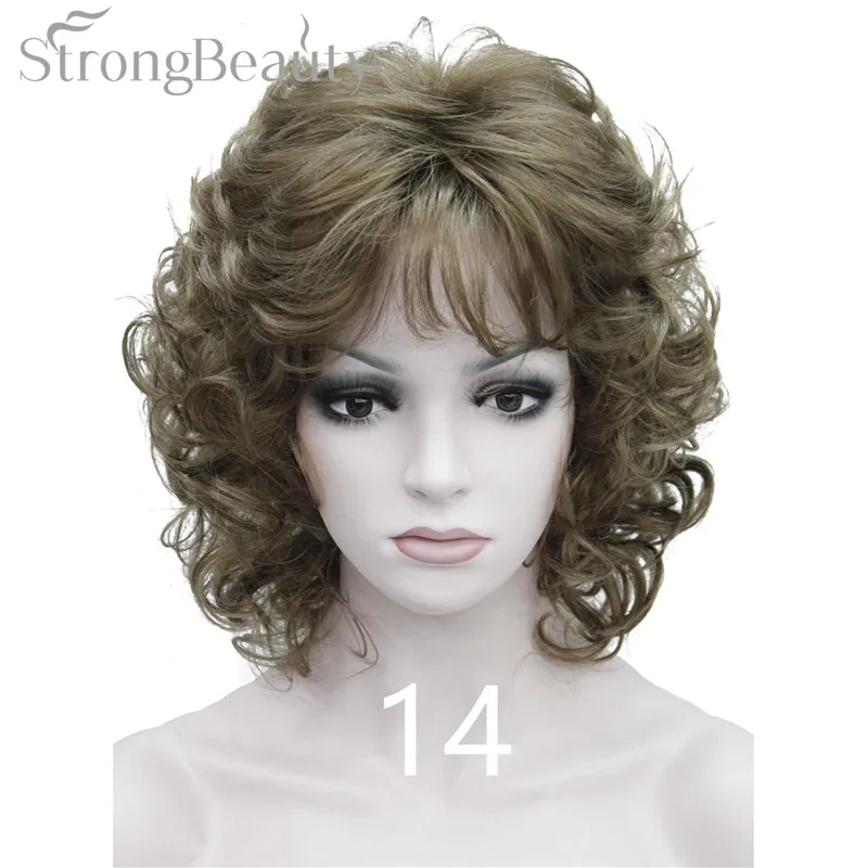 Strong Beauty Medium Short Curly Wigs Synthetic Women 's Hair Blonde/Black/ Burgundy Many Colors For Choose