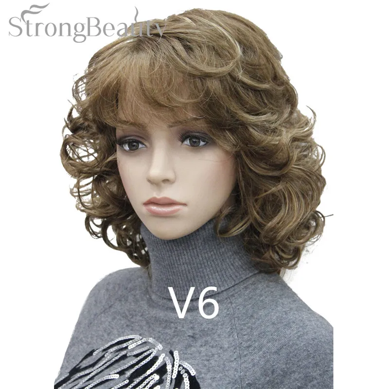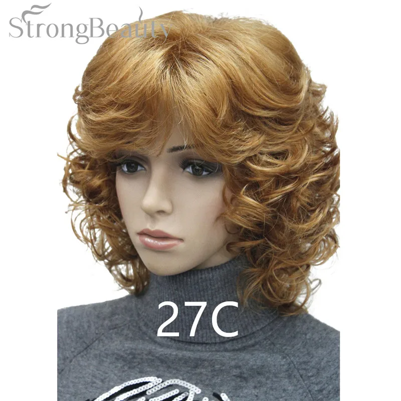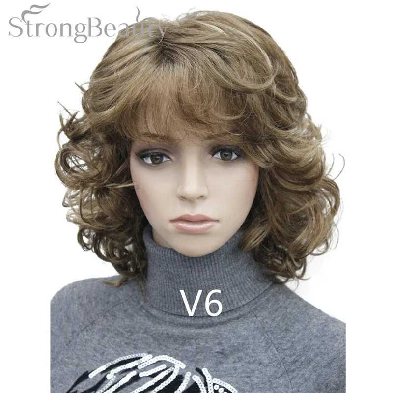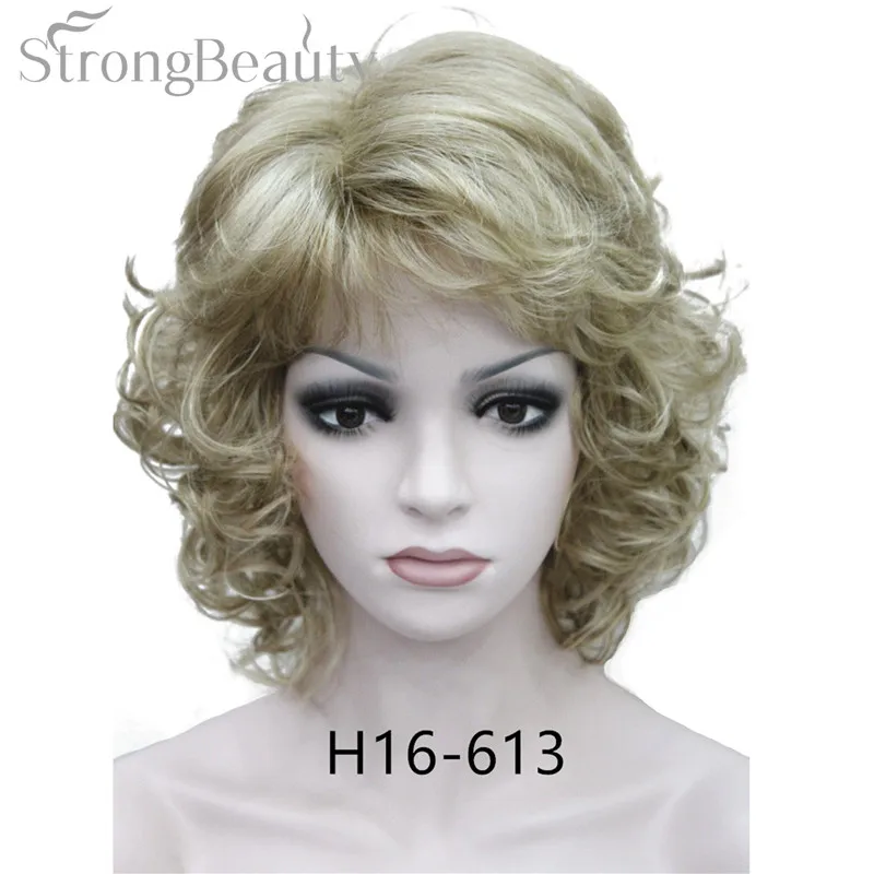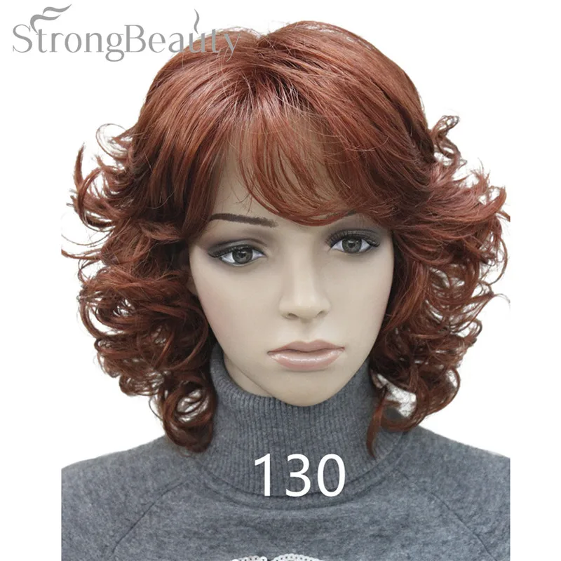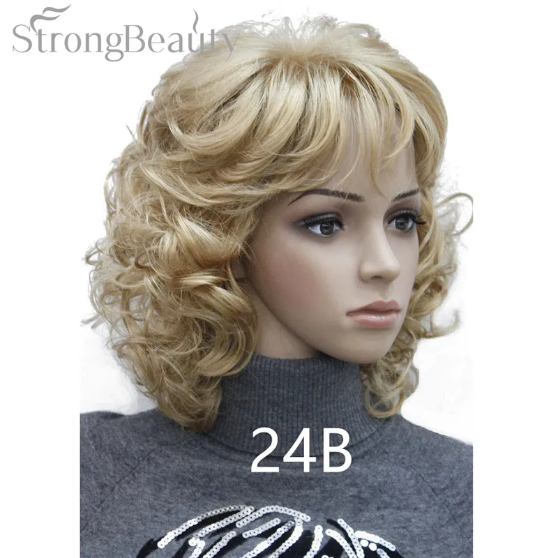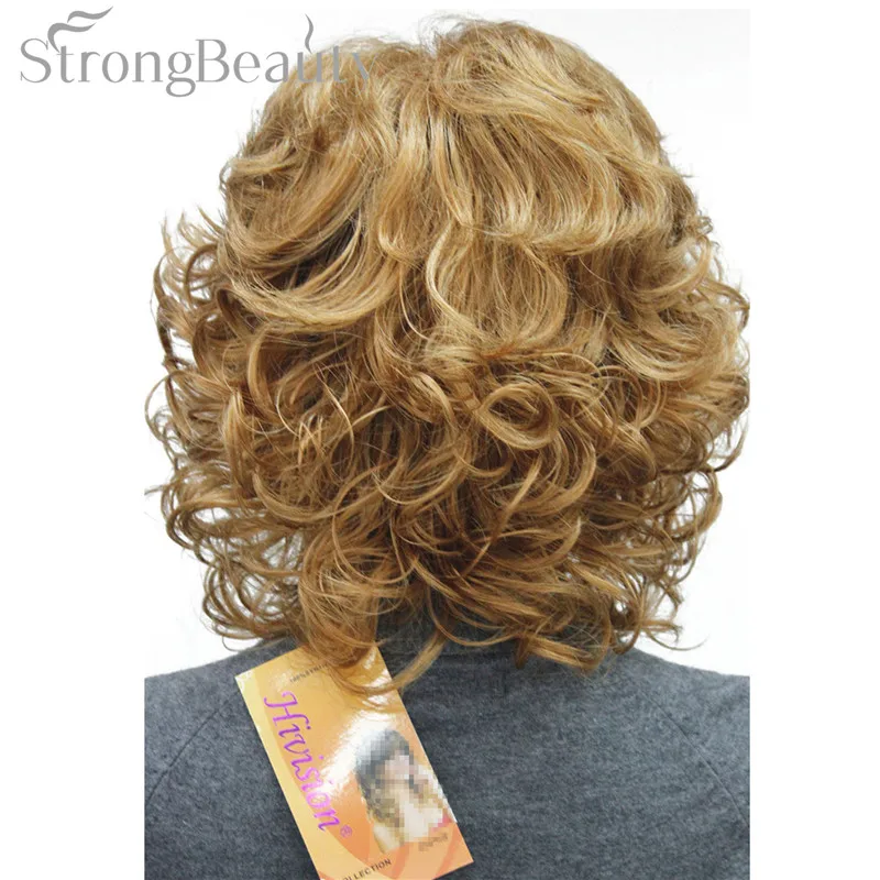 Strong Beauty Medium Short Curly Wigs Synthetic Women 's Hair Blonde/Black/ Burgundy Many Colors For Choose