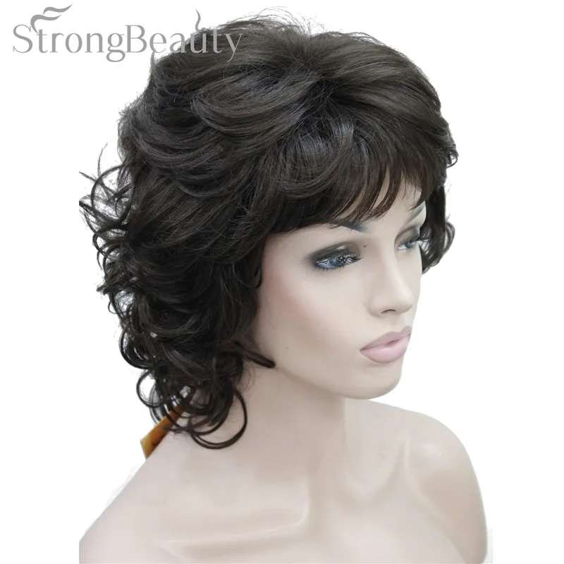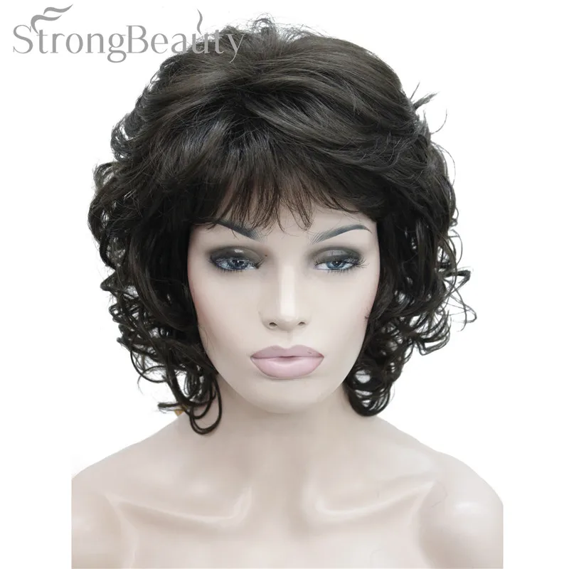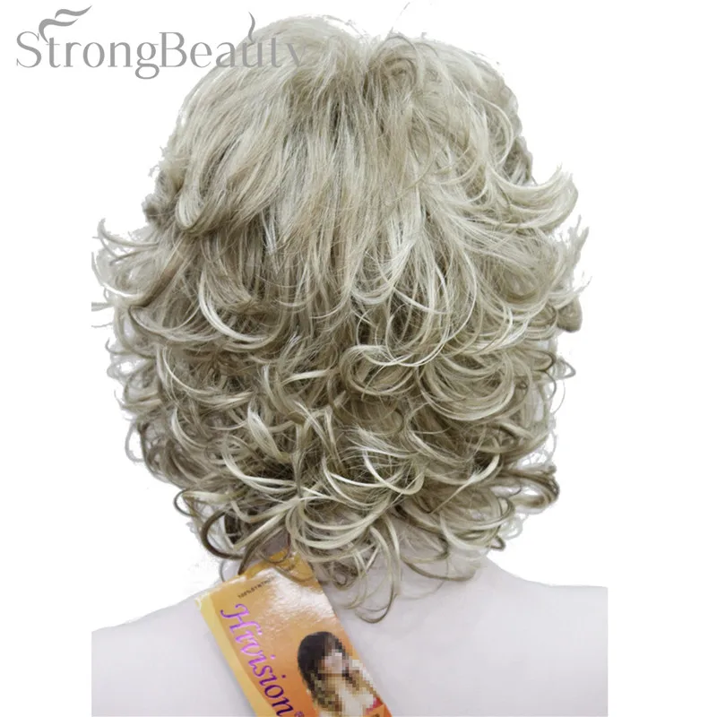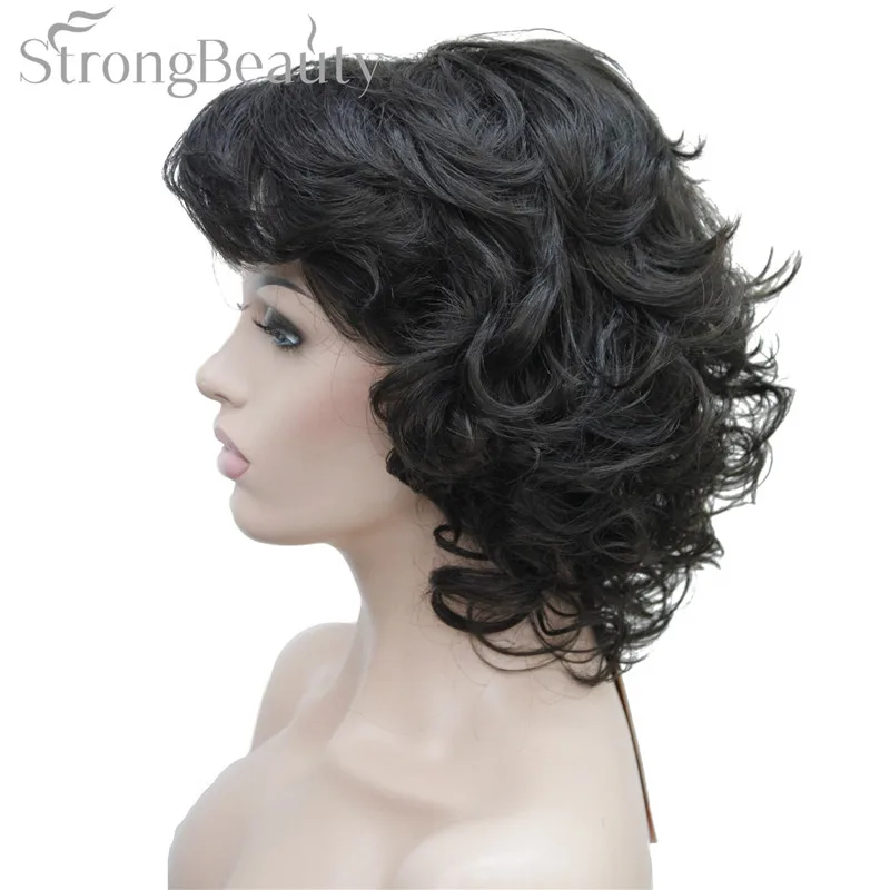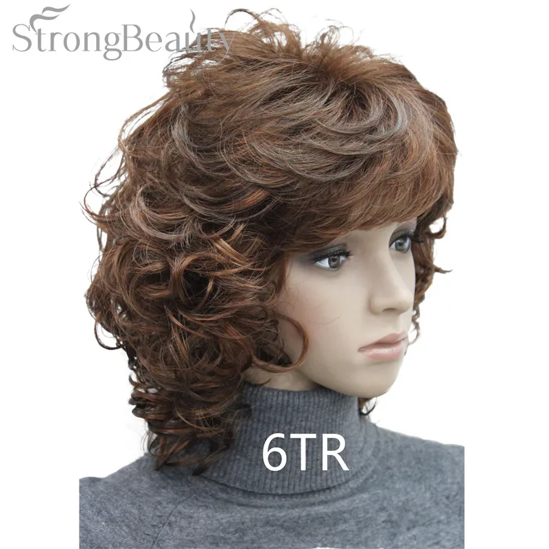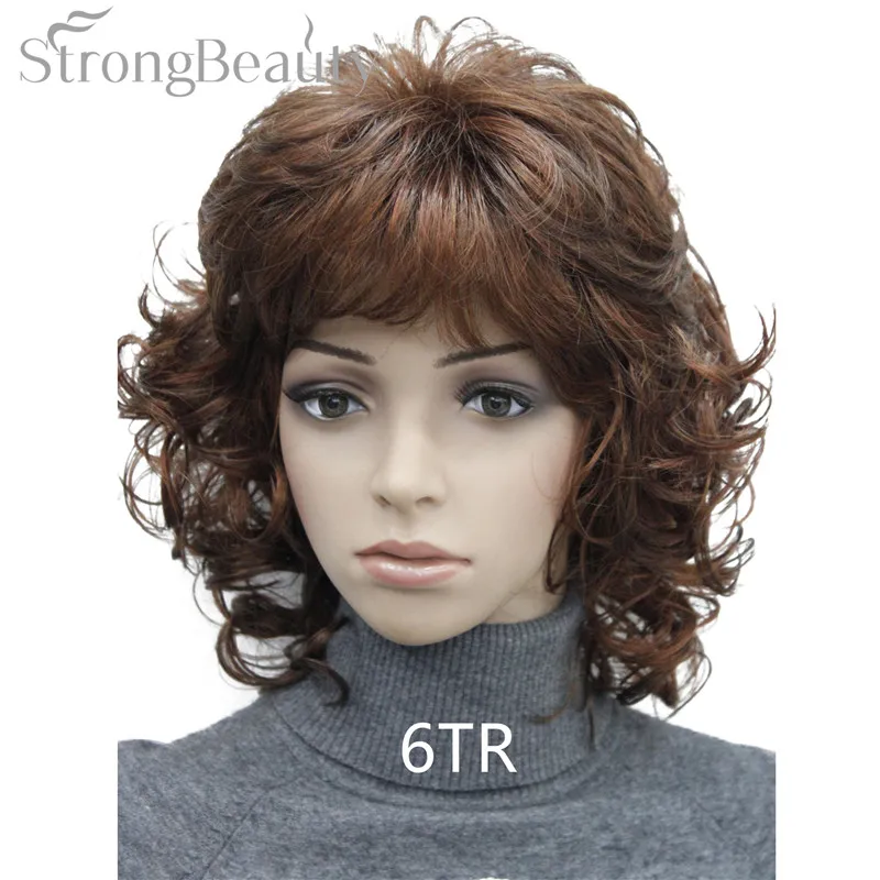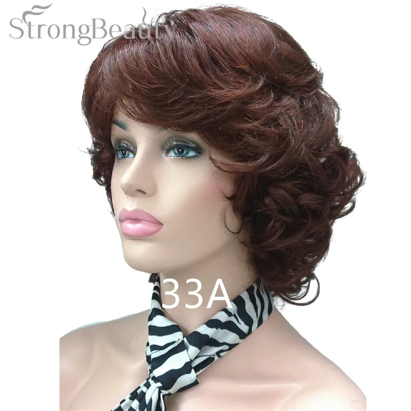 Strong Beauty Medium Short Curly Wigs Synthetic Women 's Hair Blonde/Black/ Burgundy Many Colors For Choose